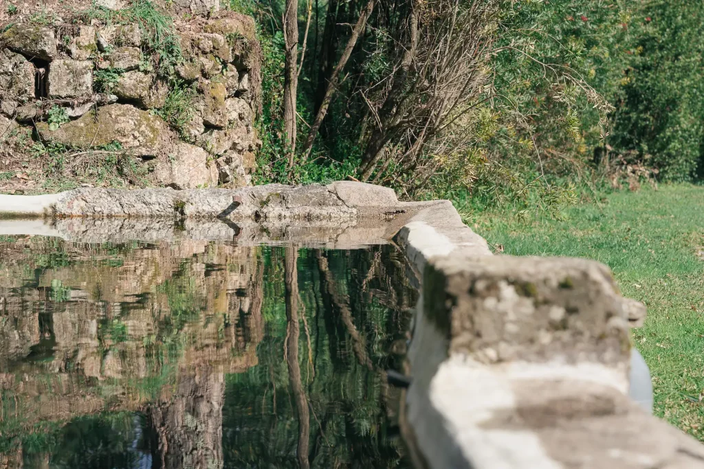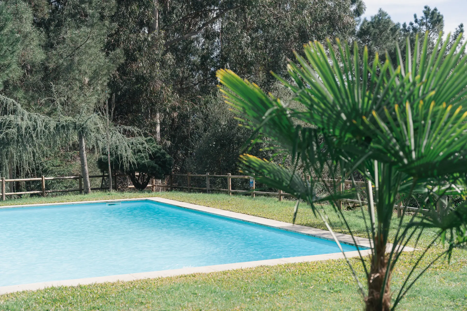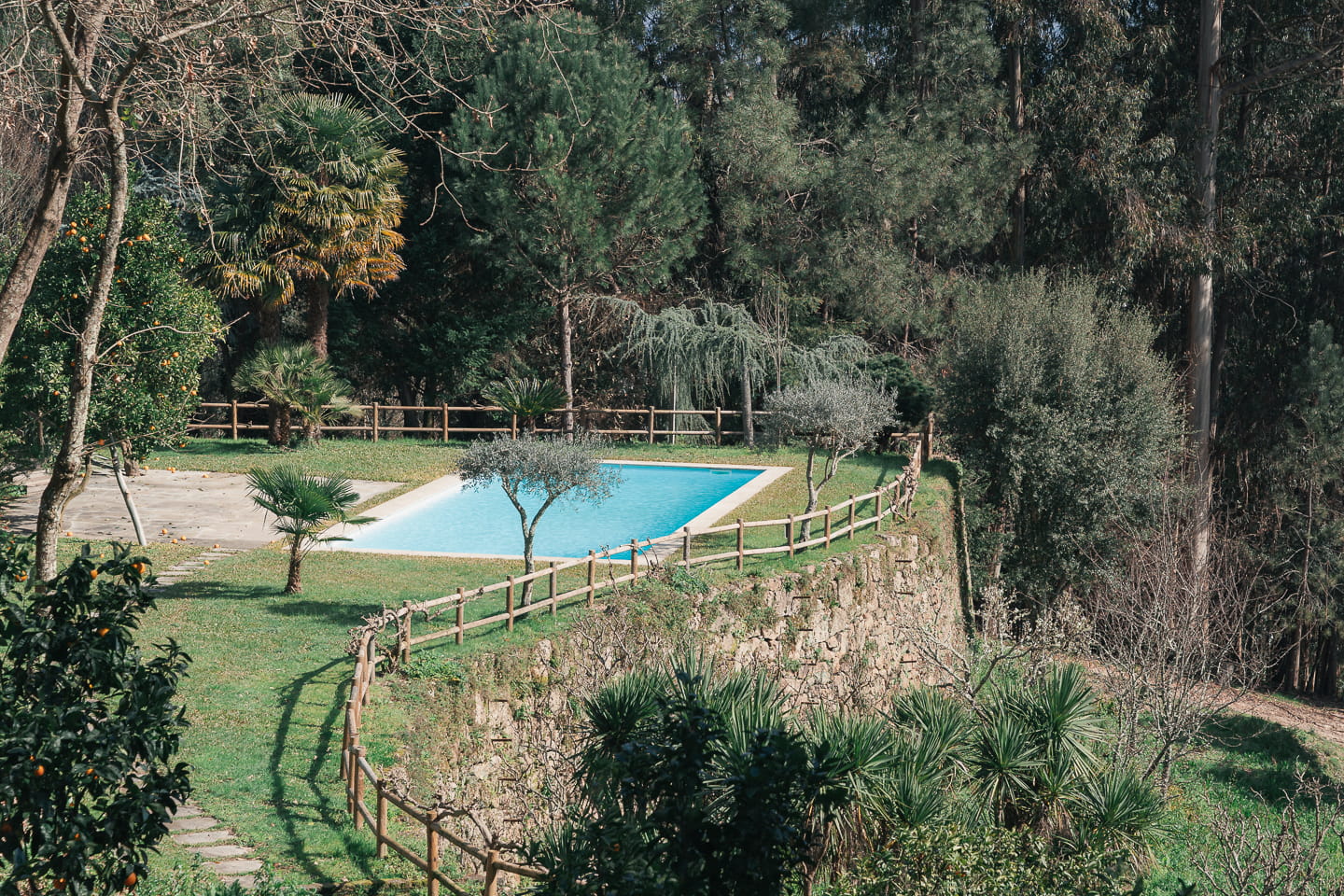 Uma piscina de água salgada no coração da quinta, com a floresta como pano de fundo. Sem regras de horário, a piscina é da quinta, e a quinta é sua durante a estadia.