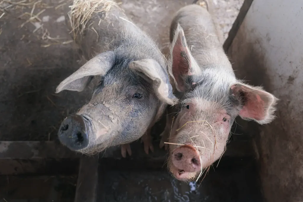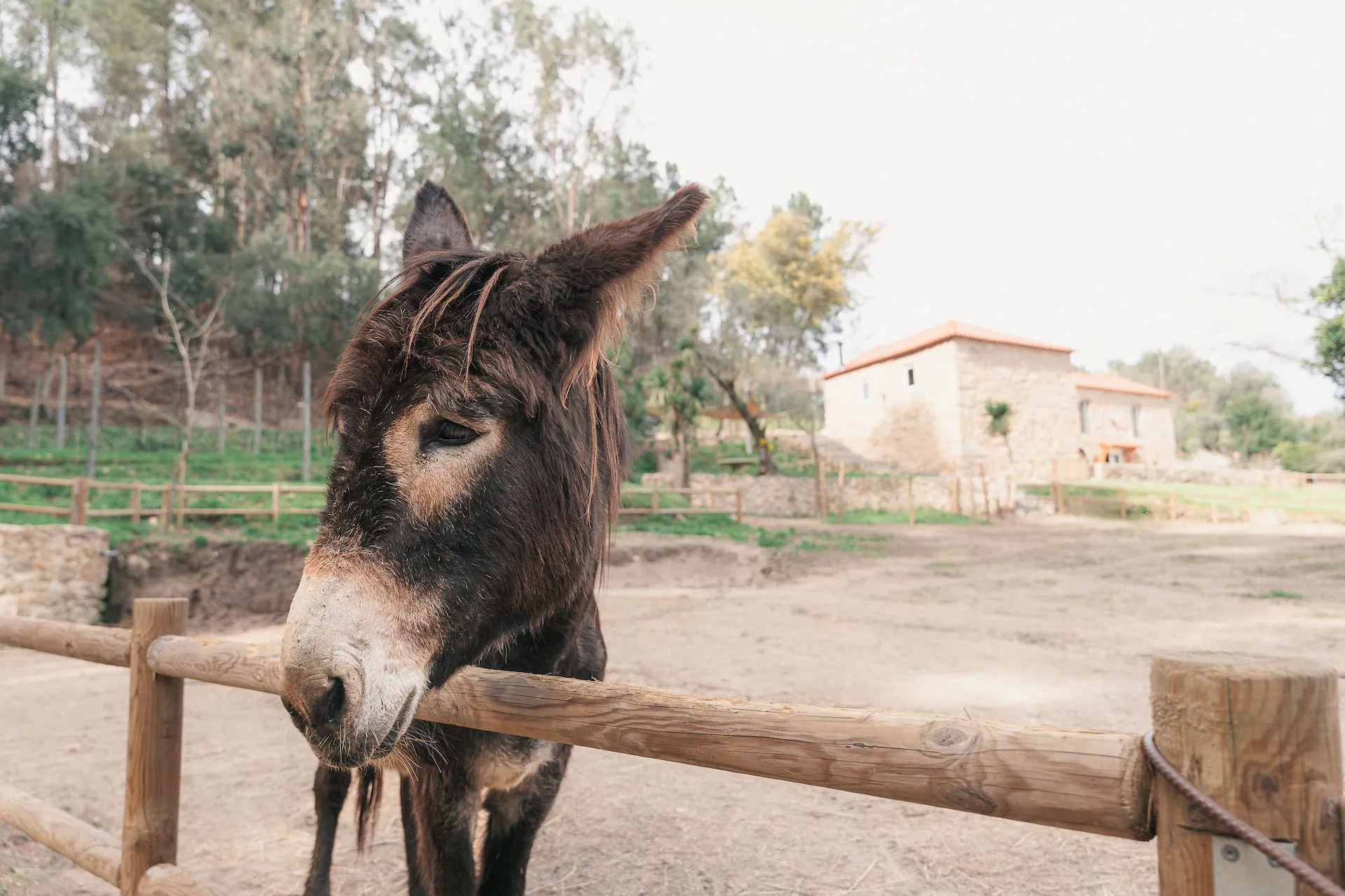Os animais da quinta não são uma atracção. São parte do lugar. Burros Mirandeses, cabras e porcas bisaras que existem aqui há anos, com os seus ritmos e os seus logradouros. Cruzar com eles de manhã são momentos que acontecem, não se organizam.